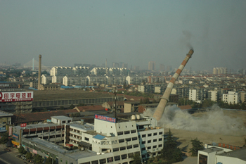 被爆破的煙囪高約80米,建于1980年,是由南通人自己建造的第一座高層煙囪,也是主城區(qū)最高的煙囪。去年,市委、市政府決定關(guān)停南通熱電和江山熱電,統(tǒng)一由大型供電企業(yè)集中供熱、供電。兩家熱電廠的關(guān)停,年可節(jié)約標(biāo)準(zhǔn)煤10萬噸、減排SO2約2800噸,為市區(qū)實(shí)現(xiàn)“十一五”節(jié)能減排目標(biāo)作出重大貢獻(xiàn)。