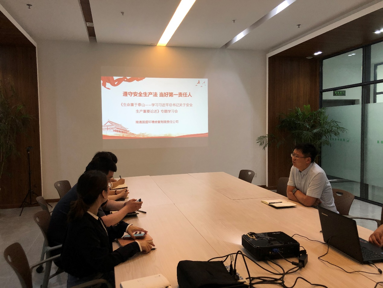 為進一步加大全公司安全生產宣教力度,推動落實企業(yè)安全主體責任,全面提高員工安全素質,6月13日下午,國盛環(huán)境在會議室開展“遵守安全生產法 當好第一責任人”主題活動,組織全體員工集中學習《生命重于泰山——學習習近平總書記關于安全生產重要論述》電視專題片。