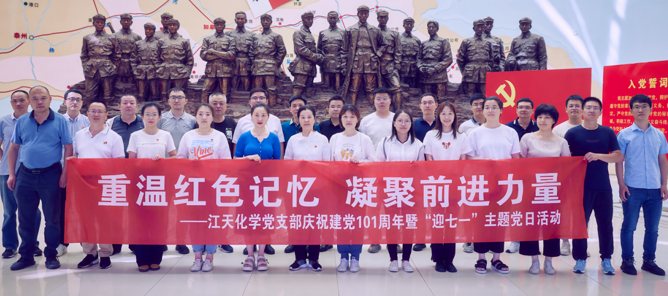 為慶祝中國共產(chǎn)黨成立101周年,根據(jù)公司黨支部的統(tǒng)一安排,6月26日,江天化學黨支部黨員、預備黨員、發(fā)展對象、入黨積極分子以及入黨申請人赴海安蘇中七戰(zhàn)七捷紀念館和如皋紅十四軍紀念館開展以“重溫紅色記憶 凝聚前進力量”為主題的“迎七一”主題黨日活動。